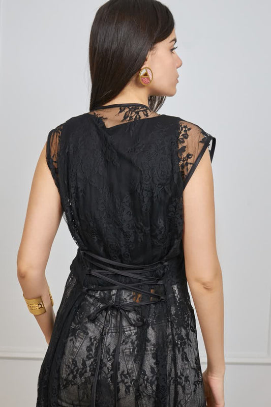 Long lace vest in black